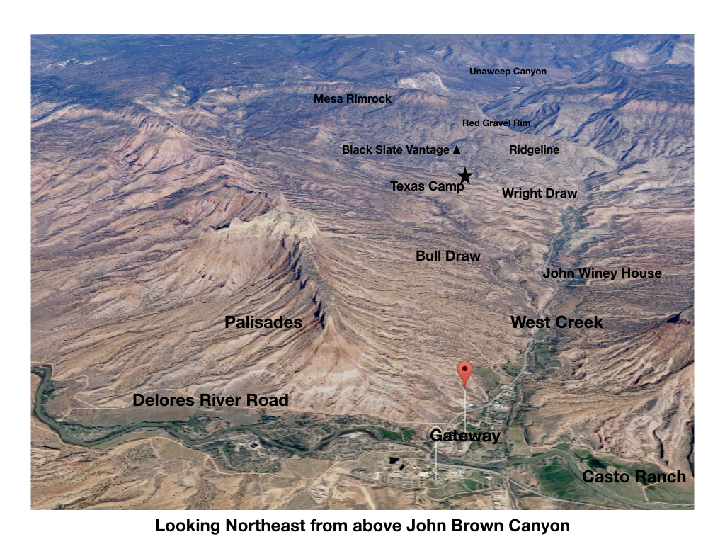 I woke dat 4:30 am.David and John had left between 3:00 to 3:30 am to ride four-wheelers to the Delores River Road.Since it was Sunday, I packed my copies of “Experiencing God” and “My Utmost for His Highest” into my backpack.In a previous hunt, I had walked back from the black slate hill and drove to church in the valley on Sunday.However, this time I knew I wouldn’t have the stamina to make two trips up the ridge.